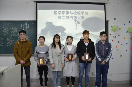 2016年3月25日晚,医学影像与检验公司第二届“水墨缘”书法大赛在1201教室举行,本届比赛的主题为“弘扬中华美德,振兴民族梦想”,研究生助教左晓阳、团委员工会主席团成员出席并担任评委。