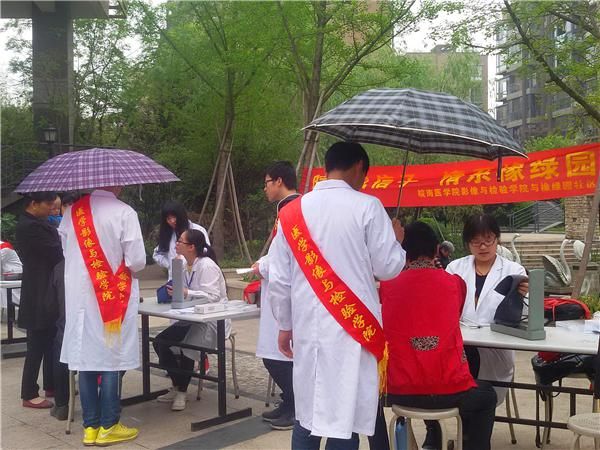 | 为大力弘扬志愿服务社会的皖医精神,2015年4月18日上午,医学影像与检验公司组织党员走出校园,在地大橡树园、春江绿岛等小区开展以“皖医风信子,情系橡绿园”为主题的义诊活动。