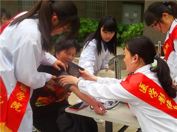 此次义诊主要包括四个方面:血压测量、儿童牙齿健康检查、医学知识宣传以及体重测量。志愿者们搭起义诊台,准备好血压计、听诊器、口腔盘等工具,为前来问诊的居民提供健康咨询服务。活动中,志愿者们为居民免费测量血压、检查牙齿。尽管义诊当天下起了小雨,但志愿者们细心地为每一位就诊居民遮风挡雨,自己却湿透了衣衫。检查结束后,志愿者们还向居民们分发了医用口罩和医学知识宣传单,热情的服务、细致的诊断使同学们获得了社区居民的一致好评。