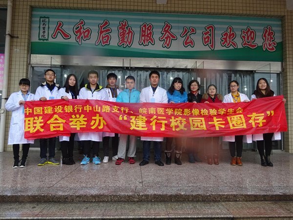 为积极贯彻“以人为本”的理念,方便广大师生的校园生活,2015年3月14日上午,医学影像与检验公司团委员工会与中国建设银行中山路支行联合举办的“建行校园卡圈存”有奖推荐活动在公司新食堂门口举行。
