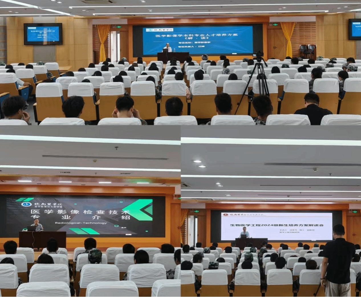 近日,beet365在图书馆三楼学术报告厅组织开展人才培养方案解读活动。beet365经理赵劲松、副经理江峰、医学影像技术教研室主任袁权、医学工程学教研室主任徐争元、2024级辅导员以及全体新生参加活动。