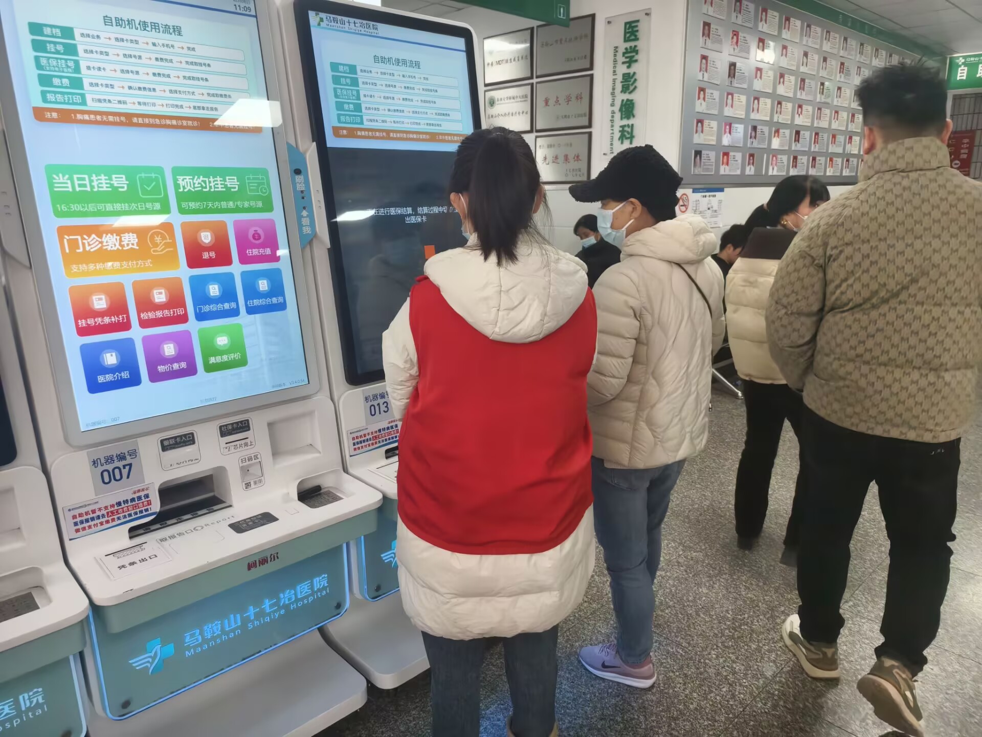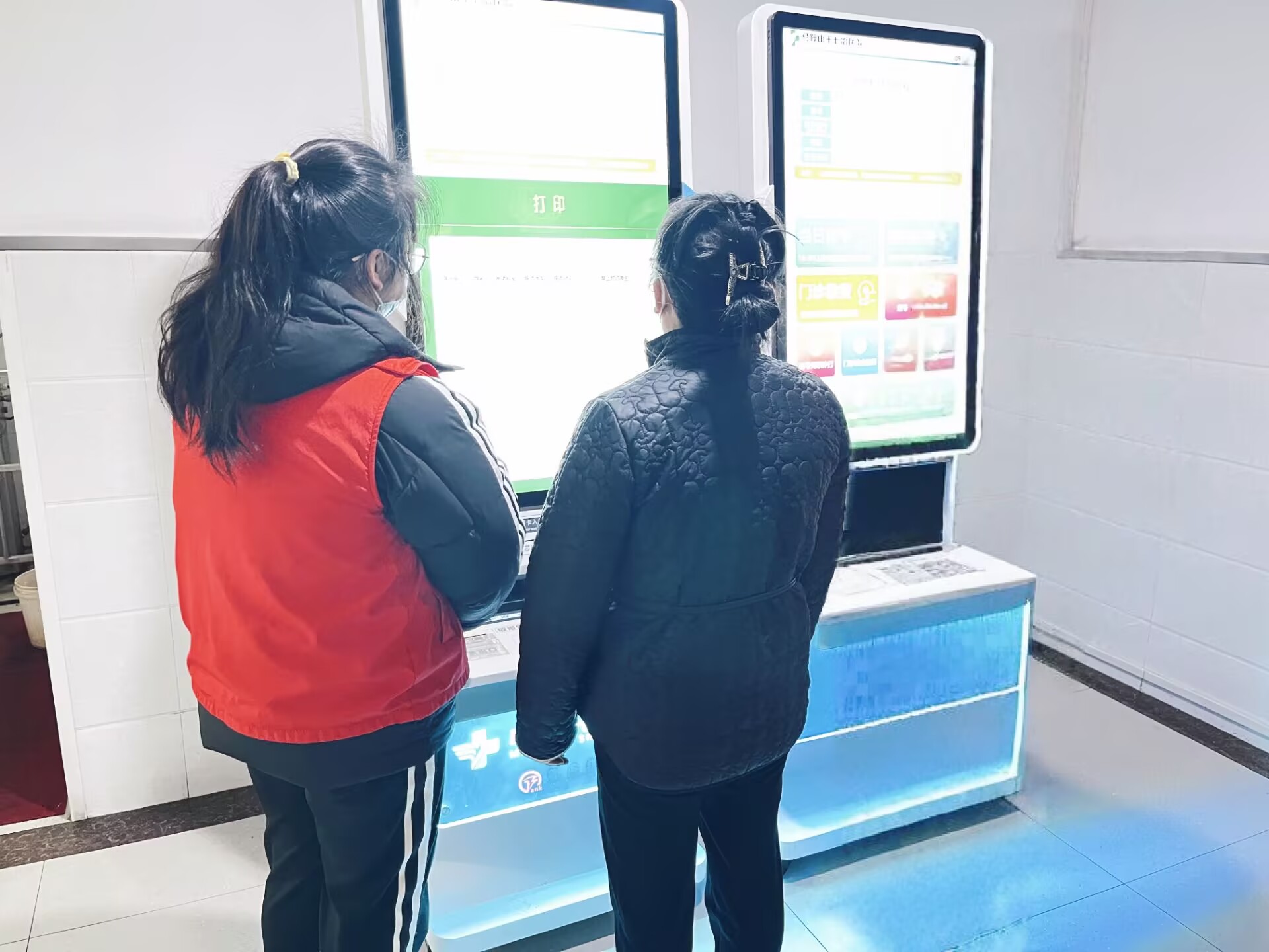 “姑娘,这机器咋用啊?我眼睛花看不清屏幕……”面对老年患者的求助,志愿者夏同学快步上前,俯身指导触屏操作。在门诊大厅的4台自助服务机前,志愿者们每天需应对几百次类似咨询。从刷身份证建档、选择科室挂号到缴费打印凭条,他们“一对一”演示,帮助不熟悉智能设备的患者跨越“数字鸿沟”。一位外地务工人员感慨:“本以为要排长队,没想到两分钟就挂上了专家号!”