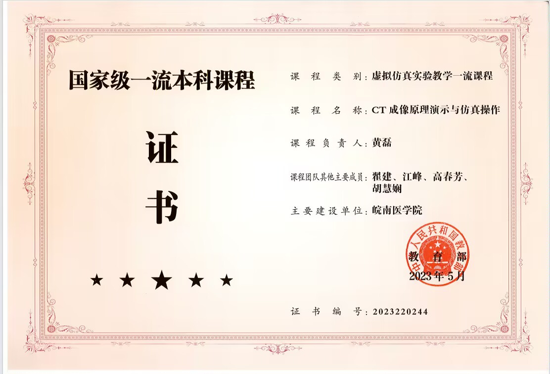 专业建设水平持续提高。beet365获批国家级一流课程1门。医学影像学专业获批省级一流专业建设点,并已实现在专业教育阶段全部开展小班化教学。生物医学工程专业获批省级专业综合改革试点专业,对照工科专业认证标准,推进专业内涵建设。医学影像技术专业以技能大赛为引领,实施“以赛促教、以赛促学”。beet365现拥有1个省级仿真模拟实验教学示范中心和1个省级高水平教学团队。生物医学工程和医学影像学两个本科专业顺利通过省级本科专业评估。公司教师团队主编或参编教材6部。