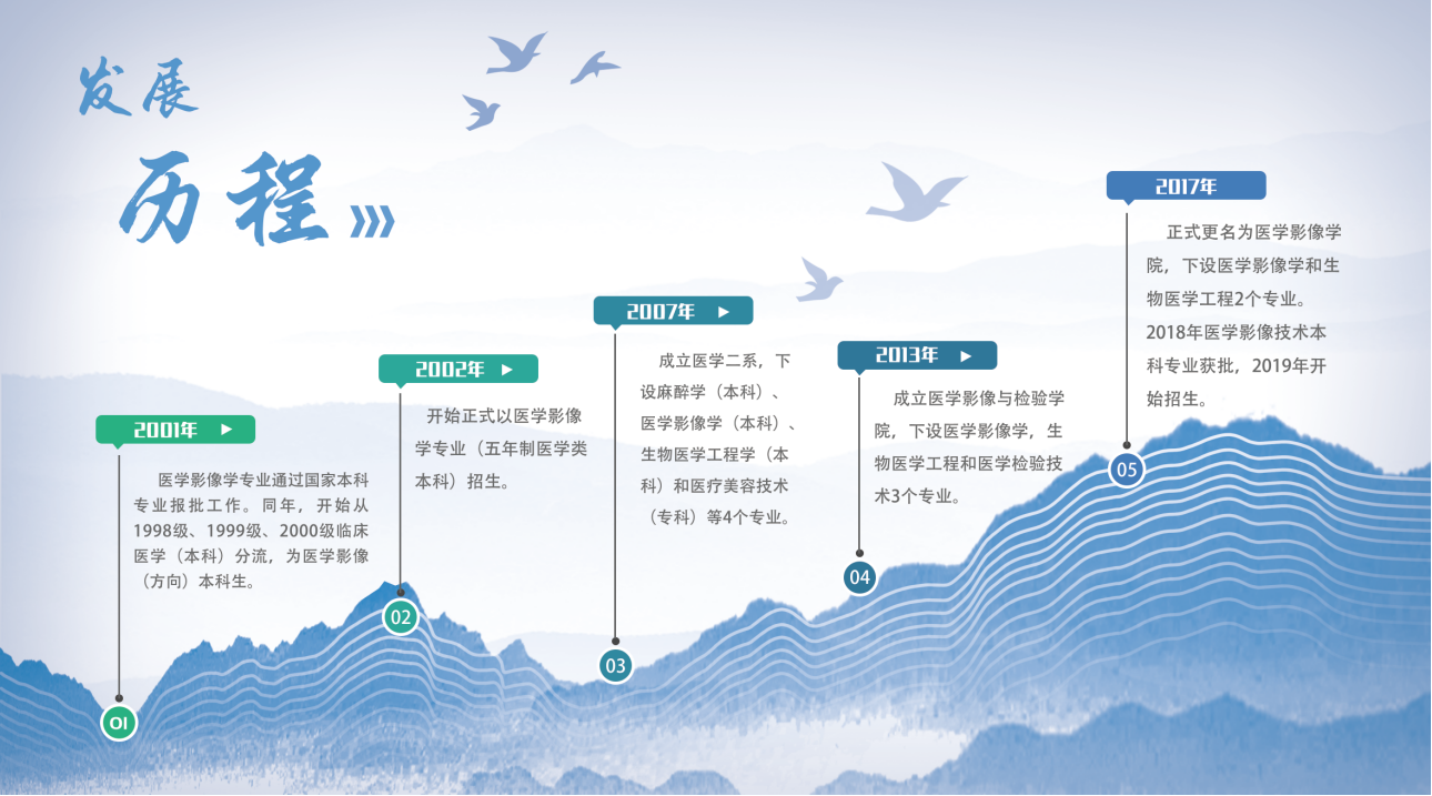 2001年国家批准设立医学影像学专业,2013年成立医学影像与检验公司,2017年正式成立beet365。现有医学影像学、生物医学工程、医学影像技术3个本科专业招生,是以医学本科教育为主体,工学和理学并举的公司。在校员工1560人。校本部教职工50人,专任教师33人,辅导员7人,设有党支部7个、 教研室8个、实验实训中心1个和省级工程研究中心1个。