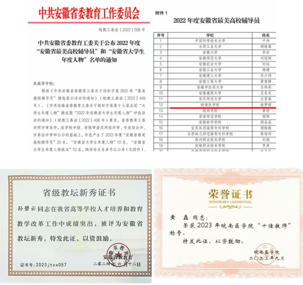 公司现有博士生导师1人,硕士生导师16人 ,教授8人。省级教坛新秀1人,校级教坛新秀1人。获安徽省最美高校辅导员荣誉称号1人,安徽省高校辅导员素质能力大赛一等奖1人,beet365官方网站首届“十佳教师”荣誉称号1人。近3年,公司坚持内培外引,培养博士1人,引进博士13人,派出攻读博士4人,柔性引进高层次人才1人。连续两年获公司人才工作年度考核“优秀”等次。