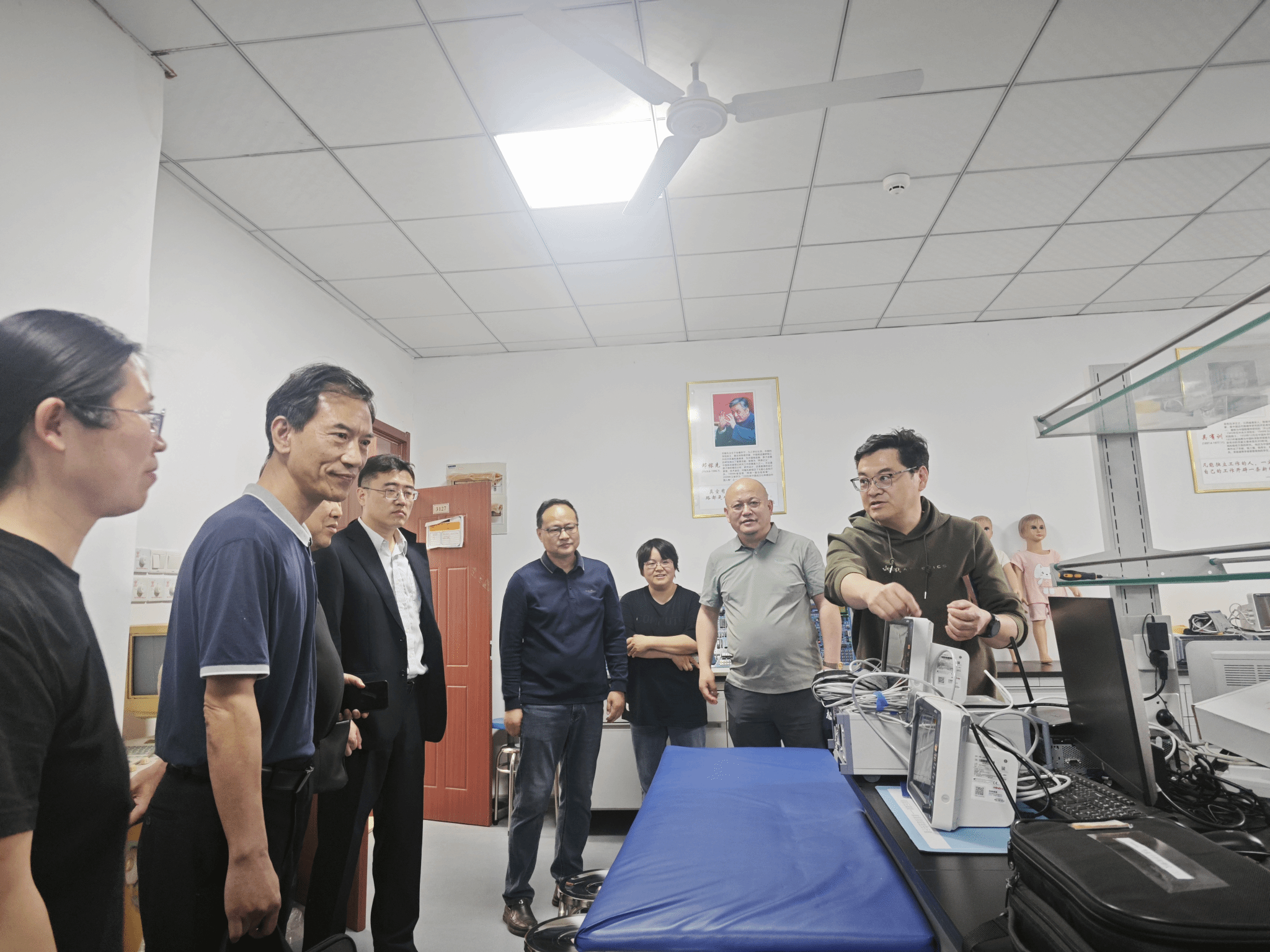 座谈会结束后,在公司党政领导的陪同下,金道明一行参观了公司教学实验室,详细了解了生物医学工程专业实验课程体系、技术创新成果以及员工参与科研项目等情况。他们对公司实验教学的基础设施和实践教学体系高度认可,并表示实验内容的设置与企业需求匹配度高。