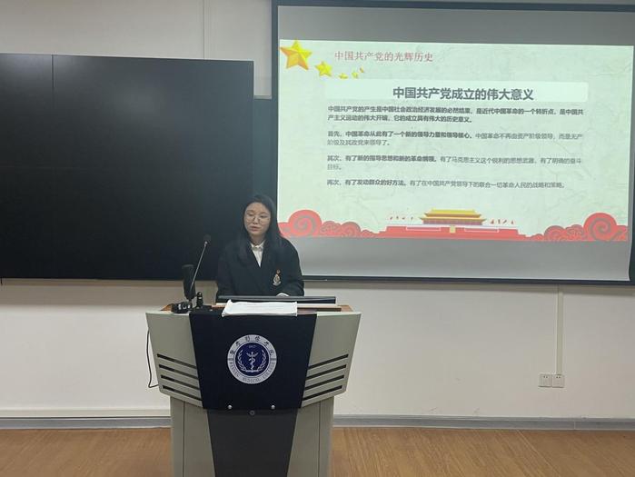 晚上七点,活动准时开始。由2021级生物医学工程(专升本)1班蔡娇担任主讲人,她以“党史学习教育,增强党性修养”为主题,带领大家回顾学习了中国共产党为了求得民族独立和人民解放,实现国家的繁荣富强,艰苦奋斗的伟大经过,号召大家不忘初心、牢记使命,坚持中国共产党的领导,艰苦奋斗,为中华民族伟大复兴贡献自己的力量。