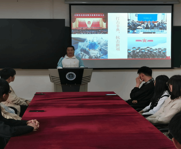 本次活动于4月17日下午两点正式开展,由19级影像7班陈蕊担任主讲人。她首先讲述了党史学习是顺应时代发展的要求,是动员全党全身心投入建设社会主义现代化国家而作出的重大决策,指出了青年老员工党史学习教育的重要性。其次,她通过讲述“党史上的今天”,从1959年全国政协第三届一次会议到2003年中共中央政治局常务委员会,向同学们展现出中国共产党一路走来历经的风风雨雨。从曾经的“抗非典”到如今的“战新冠”,中国共产党在历史挑战面前凝聚起华夏人民勇于担当的民族精神,一次又一次的向全世界证明了我党的先进性和制度的优越性。台上陈蕊慷慨激昂的演讲不时赢得台下听众阵阵掌声。