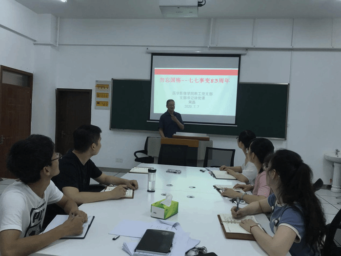 7月7日上午,支部书记黄磊给党员和入党积极分子讲题为《勿忘国殇-七七事变83周年》党课。1937年的今天,卢沟桥上的枪声响起,中华民族的全面抗战正式开始,历史绝不容遗忘,更不容篡改。今天是七七事变83周年,我们党员干部一定铭记历史,勿忘国殇,致敬英雄。