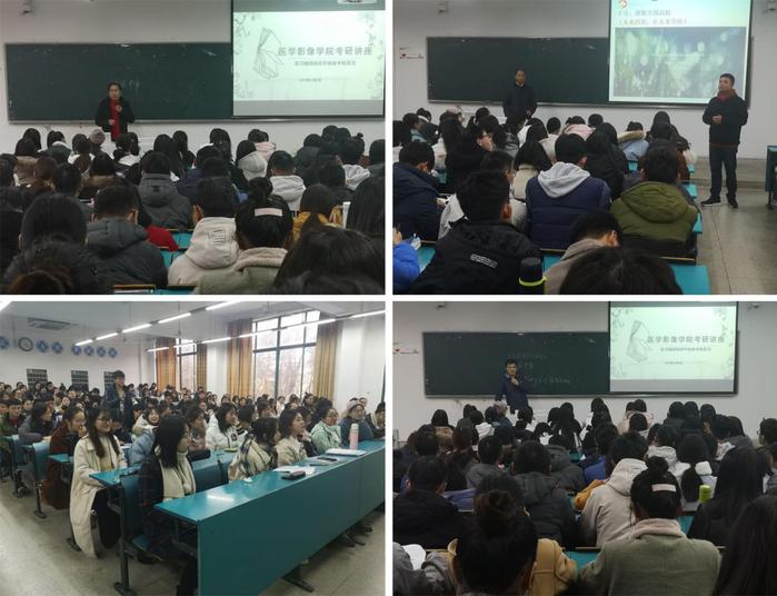 讲座期间,三位主讲人就考研的相关问题与在座的同学们进行了深入的探讨。周运锋通过举例和分析历届录取分数线鼓励大家确立高目标,并就如何准备研究生各阶段考试、如何安排学习时间提出很多宝贵的建议,同时提醒同学们要把握好实习与考研之间的平衡。赵巍介绍了如何确定考研方向和公司,并希望大家能够认真学习专业课,奠定扎实的基础,要有坚定的决心和毅力,多阅读课外书籍和英文文献。江峰主要向同学们就医学影像学专业发展,介绍了专硕和学硕的培养方式、报考条件、发展前景、入学难度、国家相关政策,让同学们更加认清当前的考研形势。三位主讲人的讲座风趣幽默,举例丰富,赢得了场下观众的阵阵掌声。讲座过程中,同学们现场提问了有关跨专业考研、导师的确定、规培等方面问题,几位老师均耐心的给予指导性的建议,详细的解答同学们的疑惑。本次考研讲座持续了两个半小时,全场座无空席,最终在掌声中圆满落下帷幕。