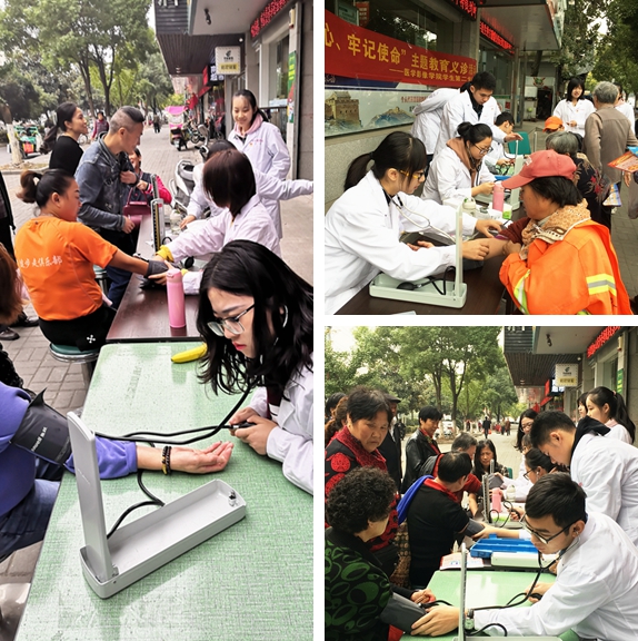 义诊活动中,志愿者们分工明确、团结协作,热情周到地对待每一位前来问诊的当地居民,耐心细致地为他们测量血压,答疑解惑。志愿者们从饮食、生活习惯等方面为居民提供了建议,并鼓励大家要树立积极乐观的生活态度,养成健康的生活习惯。检查完毕后,志愿者们向问诊居民免费发放了创可贴、板蓝根等日常药品。伴随着活动的持续开展,现场气氛愈发热烈,活动也得到了群众的广泛认可和赞誉。