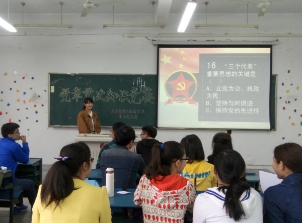 时值中国共产党建党95周年之际,为更好学习党的基本理论知识,回顾先辈风采,医学影像与检验公司员工第四党支部于2016年4月16日下午在东教201室举办党章党规党史知识竞赛。公司员工第四党支部全体党员和部分入党积极分子参加本次比赛,党支部书记徐梦琪出席活动。